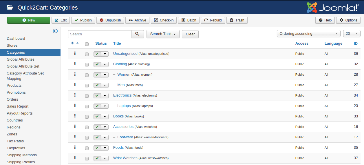 b. Create/ Publish the Quick2Cart 'All Products' Menu & Call it Store or Shop or whatever you want. This will serve as your Ecommerce Homepage