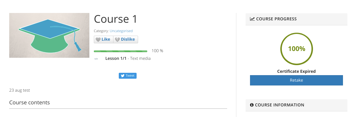 - Complete Lessons - This option allows you to get a certificate on completion of the lessons in a course.