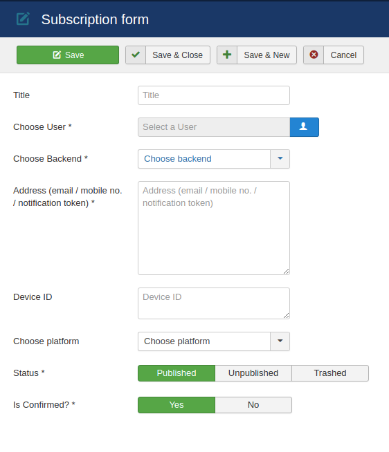 - Click on “New” button to create a subscription