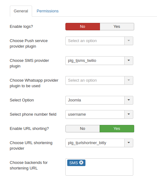 - Enable URL Shortening - This options allows short URLs in the SMS.
