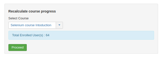 - Select the course from the dropdown whose progress you wish to recalculate, and click on the “Proceed” button.