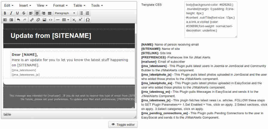 J!MailAlerts is great for Intranets, Social Networks, News Portals & for any kind of site that regularly generates content. It is completely extensible using plugins which means you can virtually add an update about activities in any extension on your Joomla website.